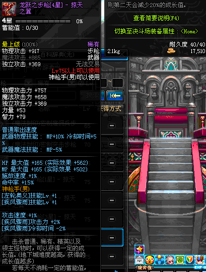 | 75 | 龙跃之步枪[4星] – 掠天之翼 | *完成二次觉醒任务后可以从NPC小铁柱处获得此道具。 | ||