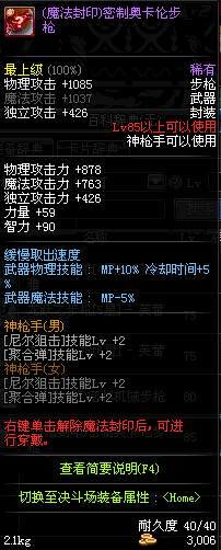 | 85 | (魔法封印)密制奥卡伦步枪 | *Lv85~91普通地下城怪物掉落 *完成[黑色迷雾]任务 |