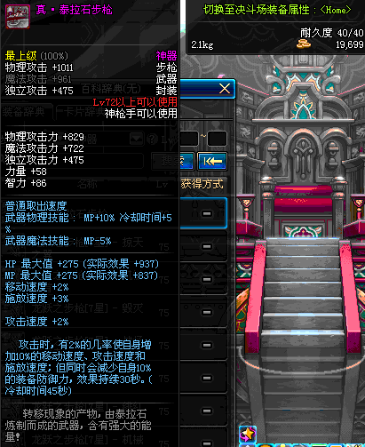 | 72 | 真·泰拉石步枪 | *设计图(70LV以上普通地下城 登场的NPC加百利 出售) *泰拉石步枪 → 用远古神器装备进化书升级(NPC船长鲁特 出售) |