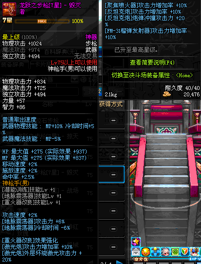 | 75 | 龙跃之步枪[5星] – 毁灭者 | *完成二次觉醒任务后可以从NPC小铁柱处获得此道具。 | ||