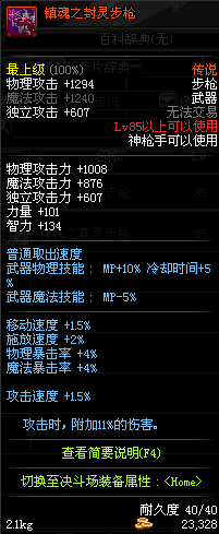 | 85 | 镇魂之封灵步枪 | *时空之门地区 - 吟游诗人艾丽丝 出售 (镇魂之石×100) *购买镇魂武器礼盒(低级镇魂之石×140) |