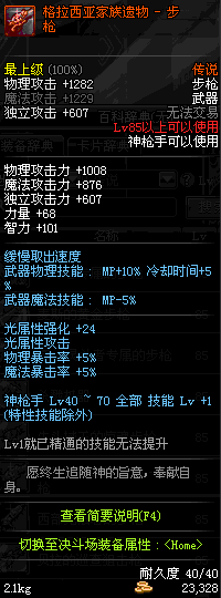 | 辅助装备: | 全职业 鬼剑士 女鬼剑 女格斗 男格斗 神枪手 女枪手 魔法师 男法师 圣职者 暗夜使者 守护者 |