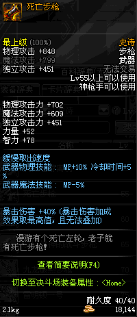 | 55 | 死亡步枪 | *Lv54~61深渊地下城怪物掉落 *在NPC沉默之克雷娅的物品店购买 |