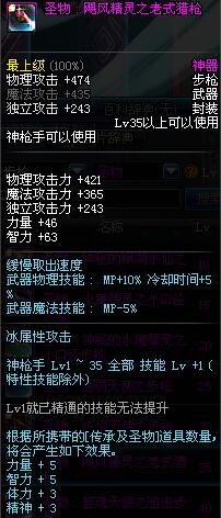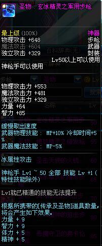 | 50 | 圣物 : 玄冰精灵之军用步枪 | *Lv50~56普通地下城怪物掉落 |