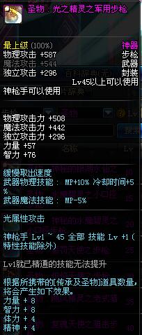 | 45 | 圣物 : 光之精灵之军用步枪 | *Lv45~51普通地下城怪物掉落 |