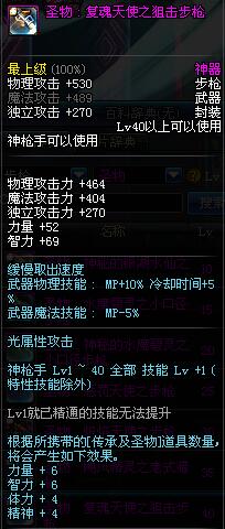 | 40 | 圣物 : 复魂天使之狙击步枪 | *Lv39~46普通地下城怪物掉落 |