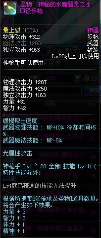 | 20 | 圣物 : 神秘的水魔碧灵之小口径步枪 | *Lv19~26普通地下城怪物掉落 | ||
