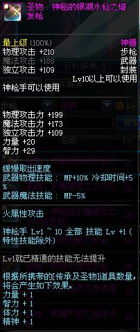 | 10 | 圣物 : 神秘的银湖水仙之燧发枪 | *Lv8~14普通地下城怪物掉落 |