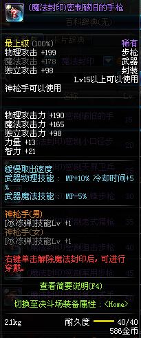 | 15 | (魔法封印)密制破旧手枪 | *Lv13~21普通地下城怪物掉落 *完成[专职贺礼]任务 |