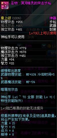 | 70 | 圣物 : 冥月精灵的突击步枪 | *Lv70~76普通地下城怪物掉落 |