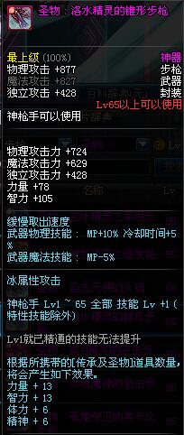 | 65 | 圣物 : 洛水精灵的锥形步枪 | *Lv65~71普通地下城怪物掉落 |