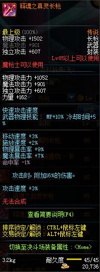 | 85 | 镇魂之封灵长枪 | *时空之门地区 - 吟游诗人艾丽丝 出售 (镇魂之石×100) *购买镇魂武器礼盒(低级镇魂之石×140) |
