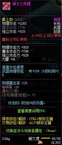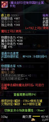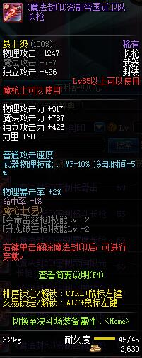 | 80 | (魔法封印)密制锋锐长枪 | *Lv80~86普通地下城怪物掉落 |