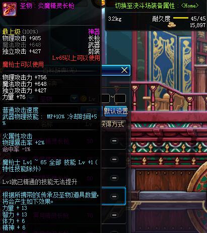| 65 | 圣物 :炎魔精灵长枪 | *Lv65~71普通地下城怪物掉落 |