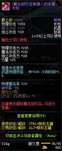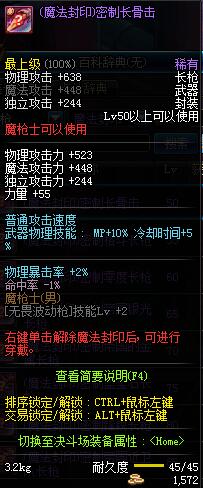 | 35 | (魔法封印)密制钢铁长枪 | *Lv34~41普通地下城怪物掉落 |