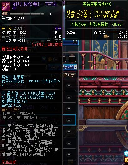 | 75 | 龙跃之长枪[3星] - 不灭战神 | *完成二次觉醒任务后可以从NPC小铁柱处获得此道具。 | ||