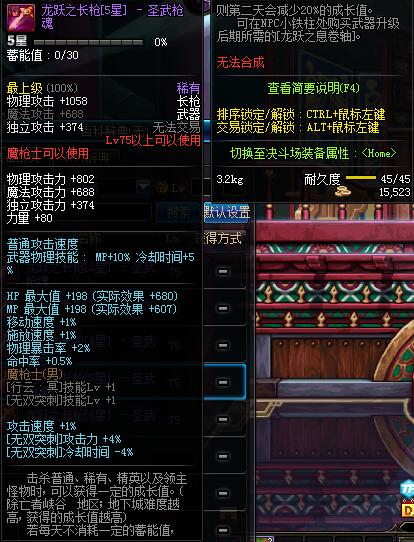 | 75 | 龙跃之长枪[2星] - 圣武枪魂 | *完成二次觉醒任务后可以从NPC小铁柱处获得此道具。 | ||