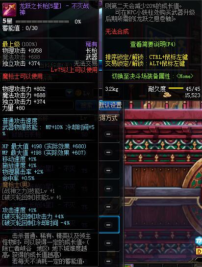 | 75 | 龙跃之长枪[5星] - 不灭战神 | *完成二次觉醒任务后可以从NPC小铁柱处获得此道具。 | ||