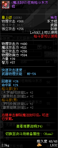 | 50 | (魔法封印)密制格斗东方棍 | *Lv50~56普通地下城怪物掉落 *完成[黑色噩梦投影出来的世界]任务 *使用Lv50~56怪物掉落的设计图进行制作 |