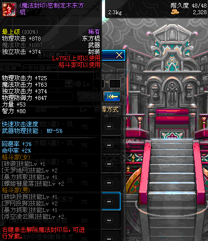 | 75 | (魔法封印)密制龙木东方棍 | *Lv75~81普通地下城怪物掉落 *完成[调查紫雾团]任务 *使用Lv75~81怪物掉落的设计图进行制作 |