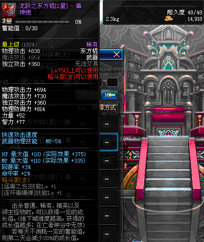 | 30 | 双龙棍 | *Lv29~36普通地下城怪物掉落 *在加百利的神秘商店购买 |