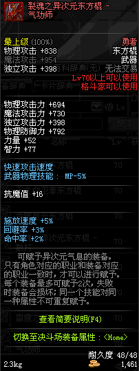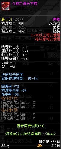 | 70 | 斗战之魂东方棍 | *Lv70~76普通地下城怪物掉落 *在加百利的神秘商店购买 |
