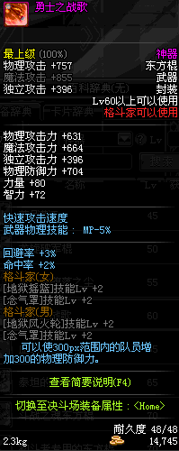 | 60 | 勇士之战歌 | *Lv58~66普通地下城怪物掉落 *在加百利的神秘商店购买 |