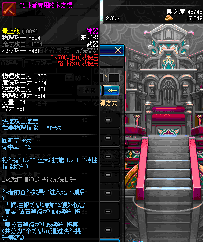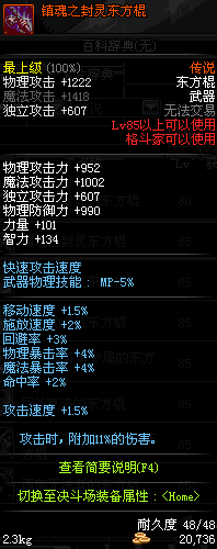 | 15 | 苍穹东方棍 | *Lv13~21普通地下城怪物掉落 *在加百利的神秘商店购买 |