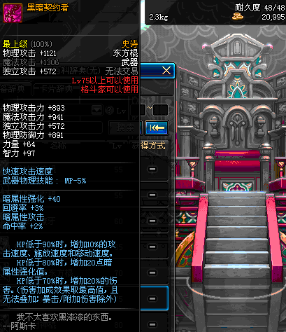 | 75 | 黑暗契约者 | *Lv74~81深渊地下城怪物掉落 *攻坚队完成安徒恩团队模式的[讨伐安徒恩]任务时,获得的奖励。 |