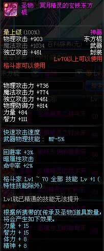 | 70 | 圣物 : 冥月精灵的玄铁东方棍 | *Lv70~76普通地下城怪物掉落 |