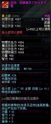 | 55 | 圣物 : 恐惧精灵之钉头东方棍 | *Lv53~61普通地下城怪物掉落 |