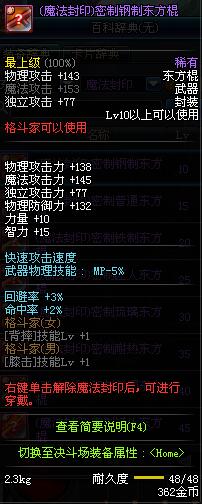 | 15 | (魔法封印)密制普通东方棍 | *Lv13~21普通地下城怪物掉落 *完成[专职贺礼]任务 |