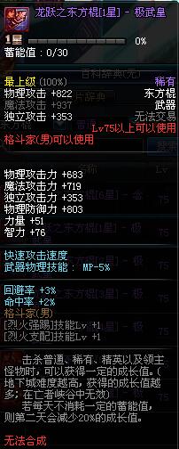 | 75 | 龙跃之东方棍[4星] - 极武圣 | *完成二次觉醒任务后可以从NPC小铁柱处获得此道具。 | ||