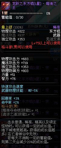 | 75 | 龙跃之东方棍[3星] - 极武圣 | *完成二次觉醒任务后可以从NPC小铁柱处获得此道具。 | ||