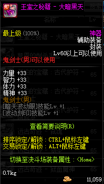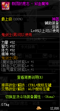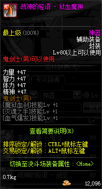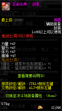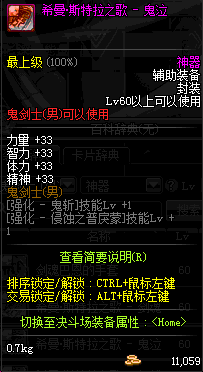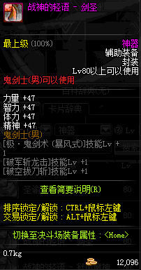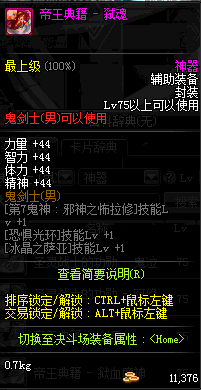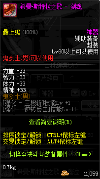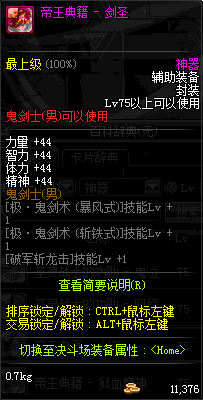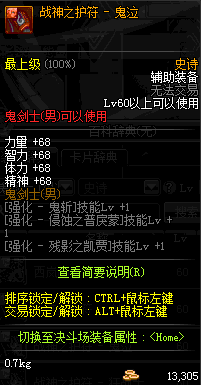 | 辅助装备: | 全职业 鬼剑士 女鬼剑 女格斗 男格斗 神枪手 女枪手 魔法师 男法师 圣职者 暗夜使者 守护者 |