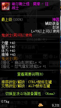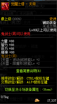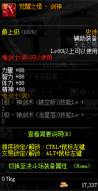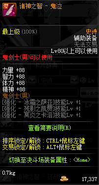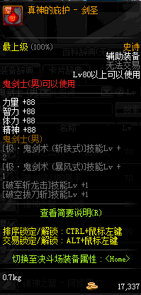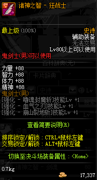 | 史诗 辅助装备-鬼剑士(男) | ||||