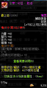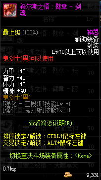 | 神器 辅助装备-鬼剑士(男) | ||||