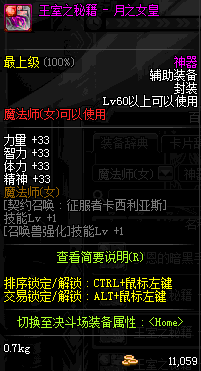 | 辅助装备: | 全职业 鬼剑士 女鬼剑 女格斗 男格斗 神枪手 女枪手 魔法师 男法师 圣职者 暗夜使者 守护者 |