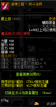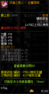 | 史诗 辅助装备- 魔法师(女) | ||||