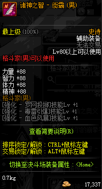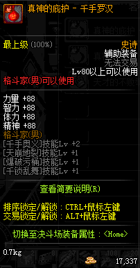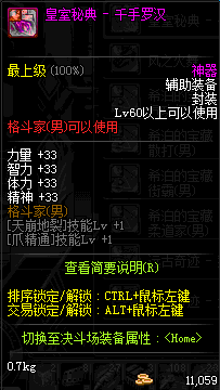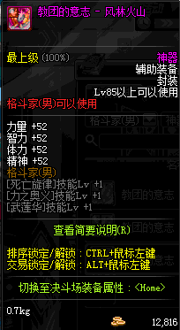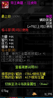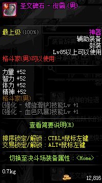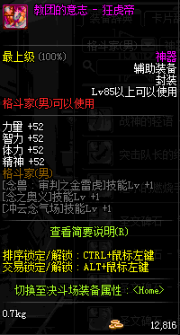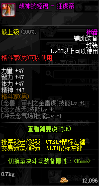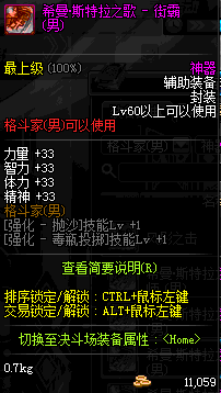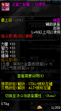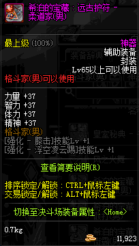| 辅助装备: | 全职业 鬼剑士 女鬼剑 女格斗 男格斗 神枪手 女枪手 魔法师 男法师 圣职者 暗夜使者 守护者 |