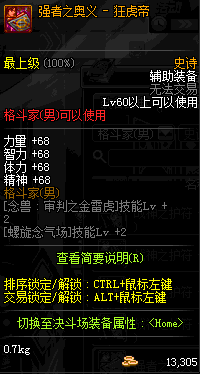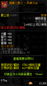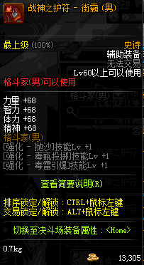 | 史诗 辅助装备- 格斗家(男) | ||||