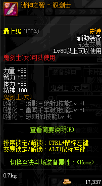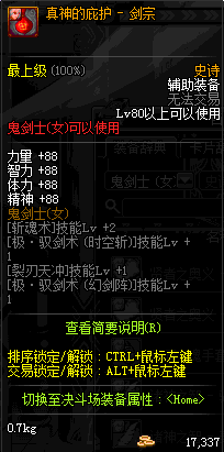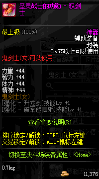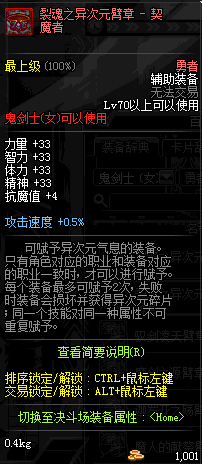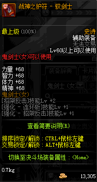 | 辅助装备: | 全职业 鬼剑士 女鬼剑 女格斗 男格斗 神枪手 女枪手 魔法师 男法师 圣职者 暗夜使者 守护者 |