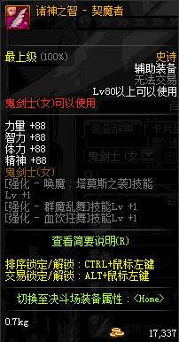 | 史诗 辅助装备-鬼剑士(女) | ||||