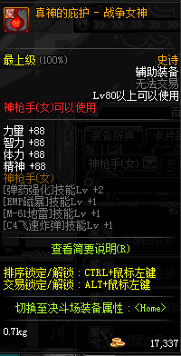| 史诗 辅助装备- 神枪手(女) | ||||