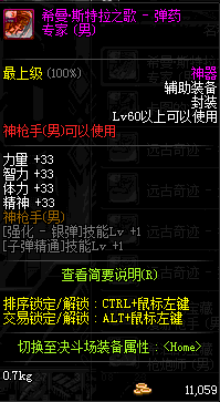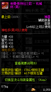 | 鬼剑士 | 神枪手 | 格斗家 | 魔法师 | 圣职者 | 暗夜使者 | 布甲 | 皮甲 | 重甲 | 轻甲 | 板甲 | 饰品 |