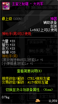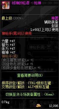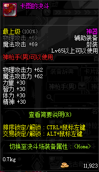 | 辅助装备: | 全职业 鬼剑士 女鬼剑 女格斗 男格斗 神枪手 女枪手 魔法师 男法师 圣职者 暗夜使者 守护者 |