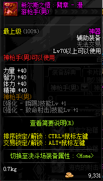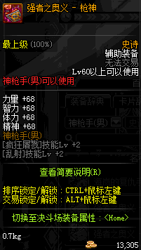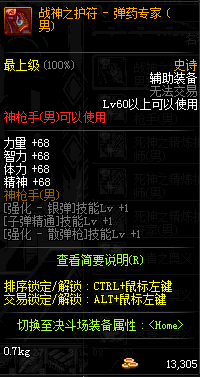 | 史诗 辅助装备- 神枪手(男) | ||||