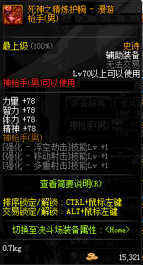 | 70 | 死神之精炼护腕 - 漫游枪手(男) | |||