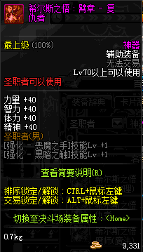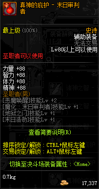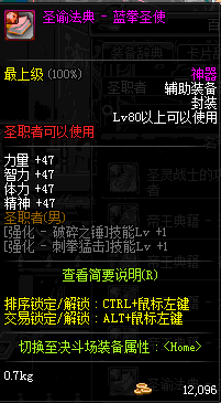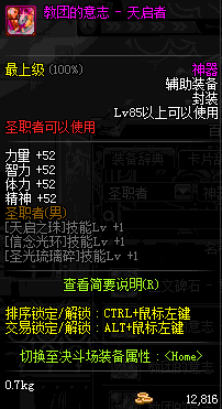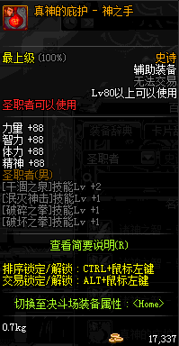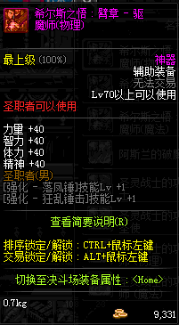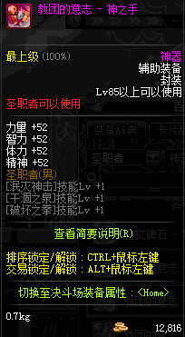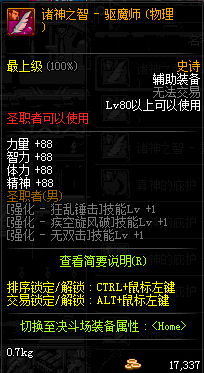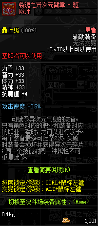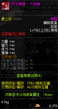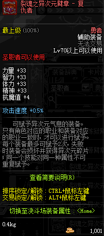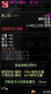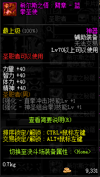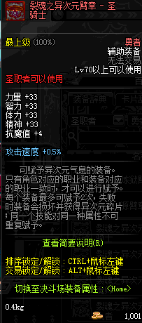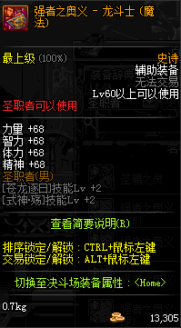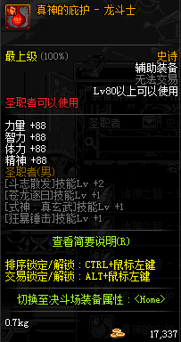 | 辅助装备: | 全职业 鬼剑士 女鬼剑 女格斗 男格斗 神枪手 女枪手 魔法师 男法师 圣职者 暗夜使者 守护者 |