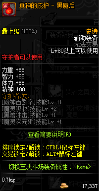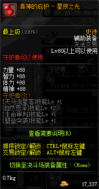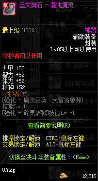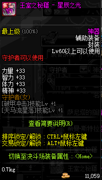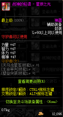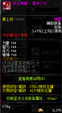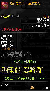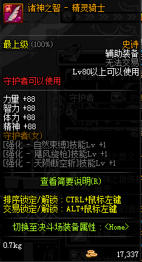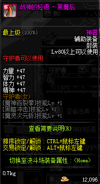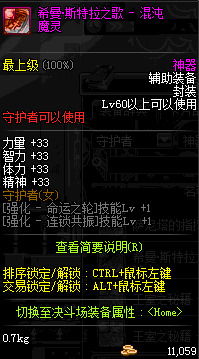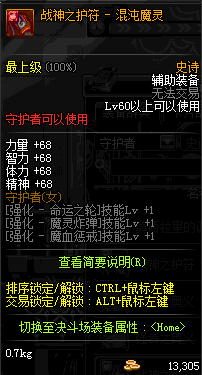 | 辅助装备: | 全职业 鬼剑士 女鬼剑 女格斗 男格斗 神枪手 女枪手 魔法师 男法师 圣职者 暗夜使者 守护者 |